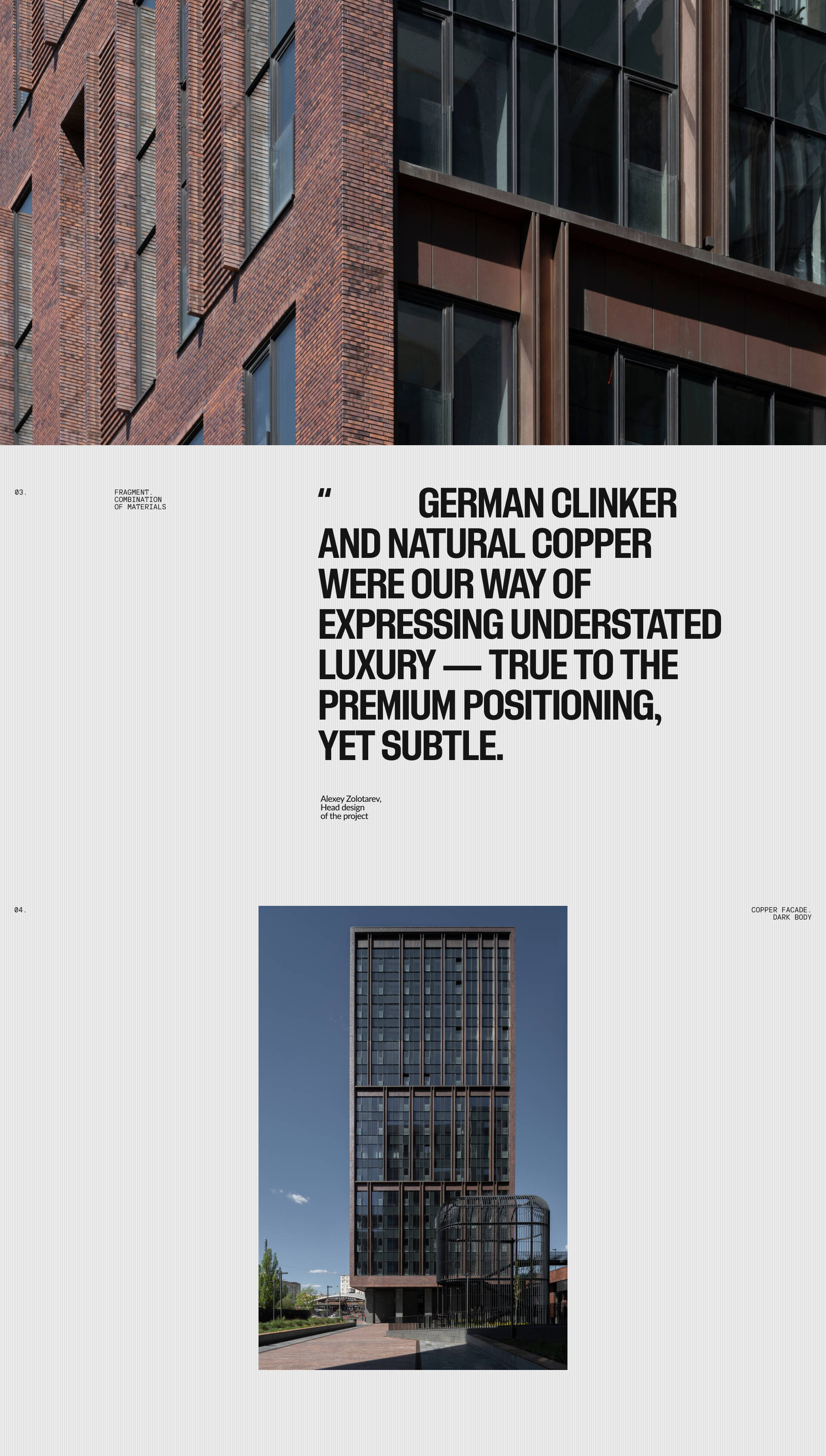Дизайн строится на идее «современной роскоши»: модульная сетка, крафтовые детали и сложный фон создают атмосферу премиальности без излишней декоративности.